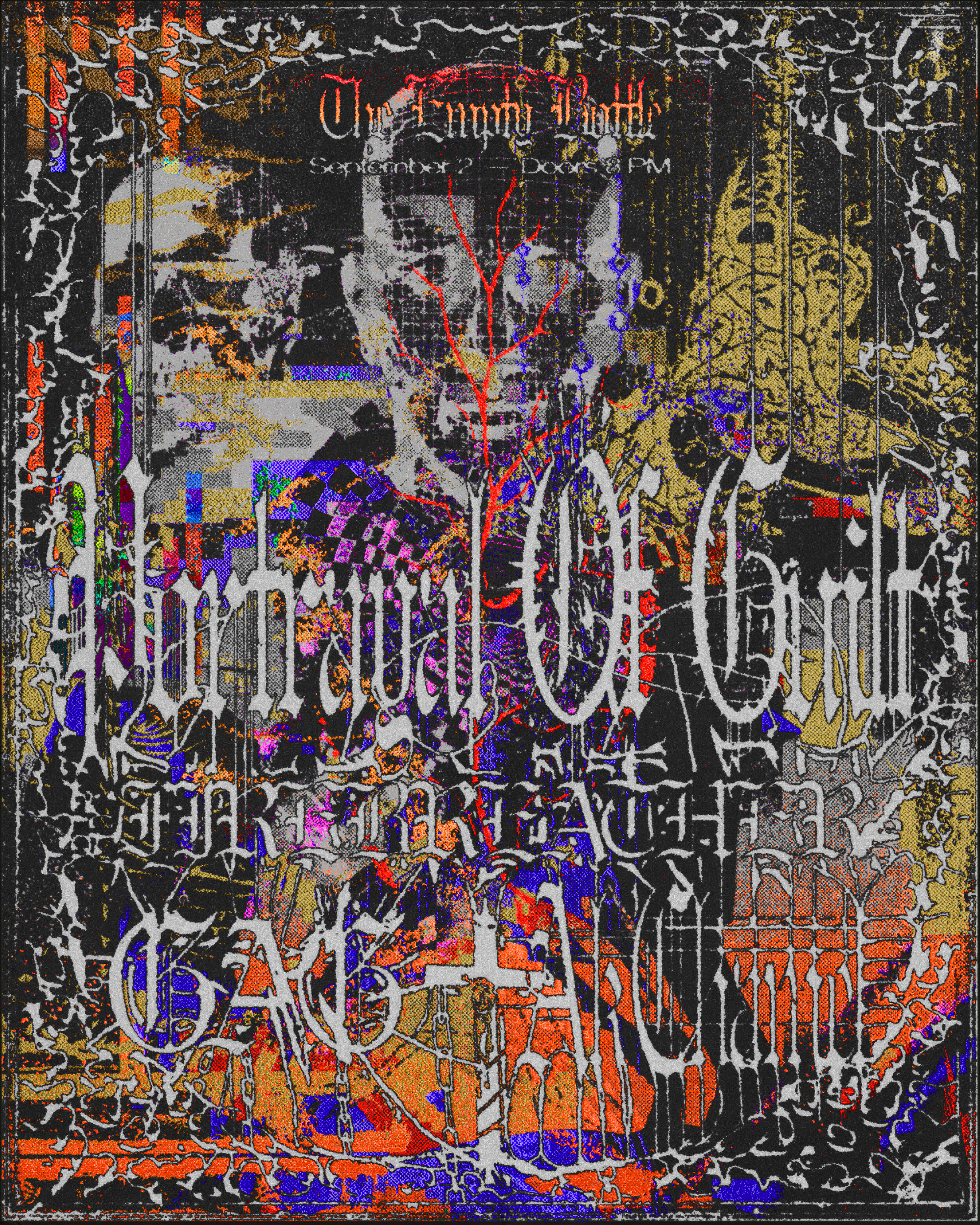 Flyer in 9 colorways for the Chicago leg of Portrayal of Guilt’s US tour with Firebreather, Gag, and Ak’Chamel at The Empty Bottle Chicago